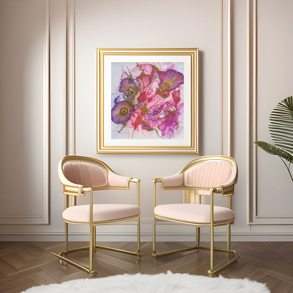 This collection was inspired by the Mexican Festival, Day of the Dead. A fun and colourful collection, painted with alcohol ink on canvas, sealed with UV protection spray and meticulously embroidered and beaded!
