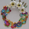 The Coral Wreath is an abstract series that takes inspiration from the hustle and bustle of a busy living coral reef with tons of different colours, textures and contrasts of sea life on the sea bed. I took inspiration from my backpacker days, traveling through South East Asia, snorkeling above these wonderful colourful worlds and seeing beautiful, floating Plumeria flowers on the surface of the sea.
